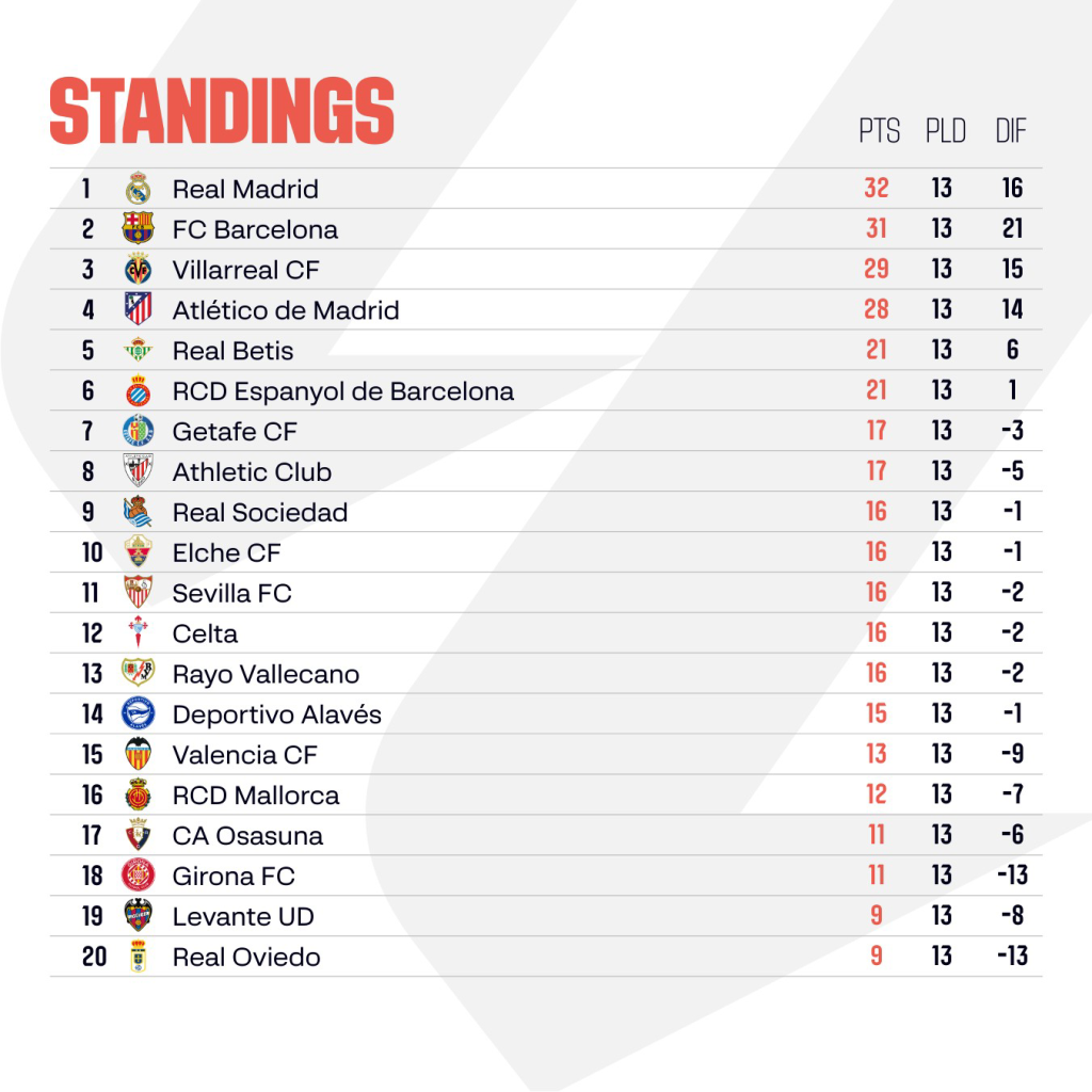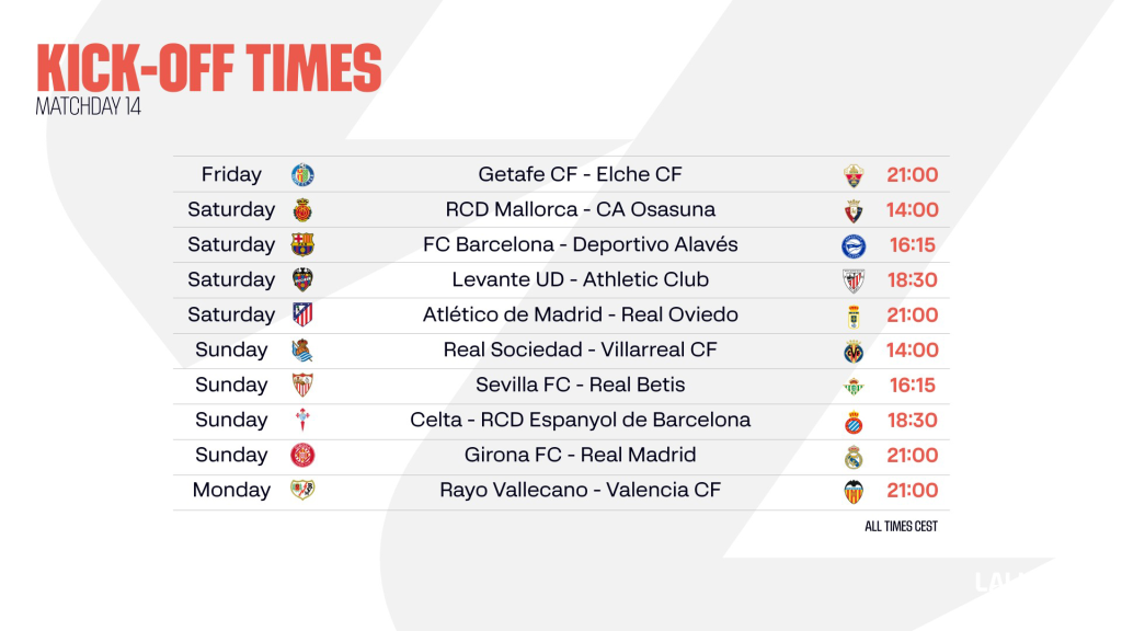 The Sunday night game also involves a Catalan team, as Girona FC host Real Madrid. Xabi Alonso’s side have drawn their past two league matches, both of them on the road, so they’ll hope to finally win an away game again when they travel to the Estadi Montilivi to take on a relegation zone team.