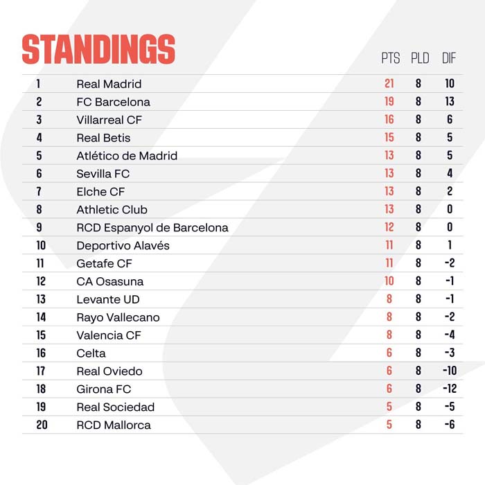 Next up is an important game near the top of the table, with third-placed Villarreal CF facing off against fourth-placed Real Betis. Both clubs have started the season well and have the objective of qualifying for the Champions League, so the three points on offer are crucial, even just a quarter of the way through the campaign.