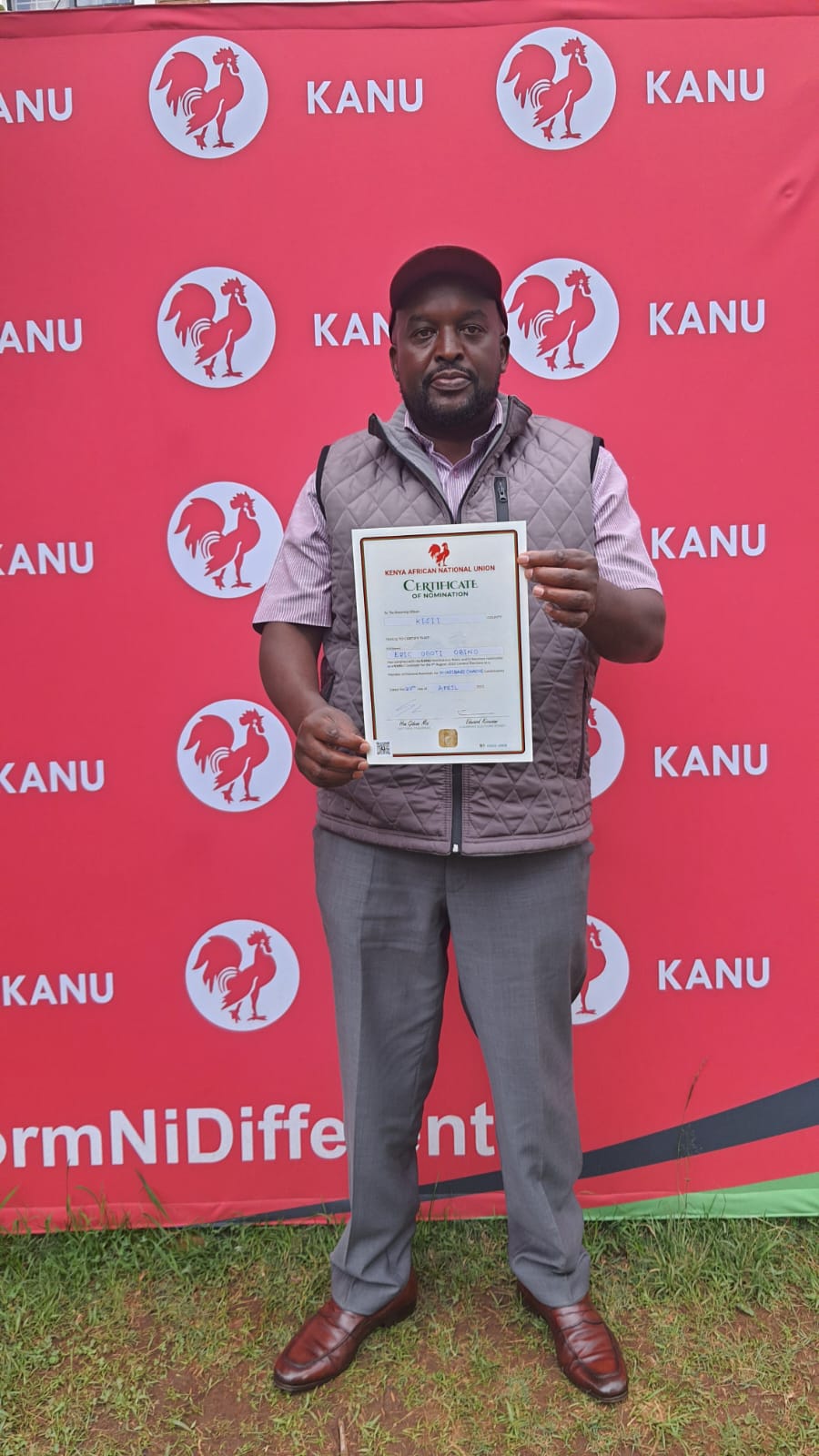 Veteran journalist Eric Obino has finally been awarded the Kenya African National Union (KANU) nomination certificate to vie for the Nyaribari Chache parliamentary seat during the August 9 General Elections.